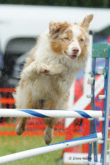 She is back in the chair with me about 3 dogs prior to our turn, she is totally relaxed, ears on her head forward with no signs of stress. Its our turn; I go to the start jump ask her to sit, then woof and lead out to the take off side of 2 Jen has suggested that I do a moving push (my body open to Party moving to the obstacle laterally then releasing her and rotating my shoulders as she takes it) initially I did it incorrect as I took her head to draw the line. But I should have opened my shoulders as i stated above, the result was a knocked bar.